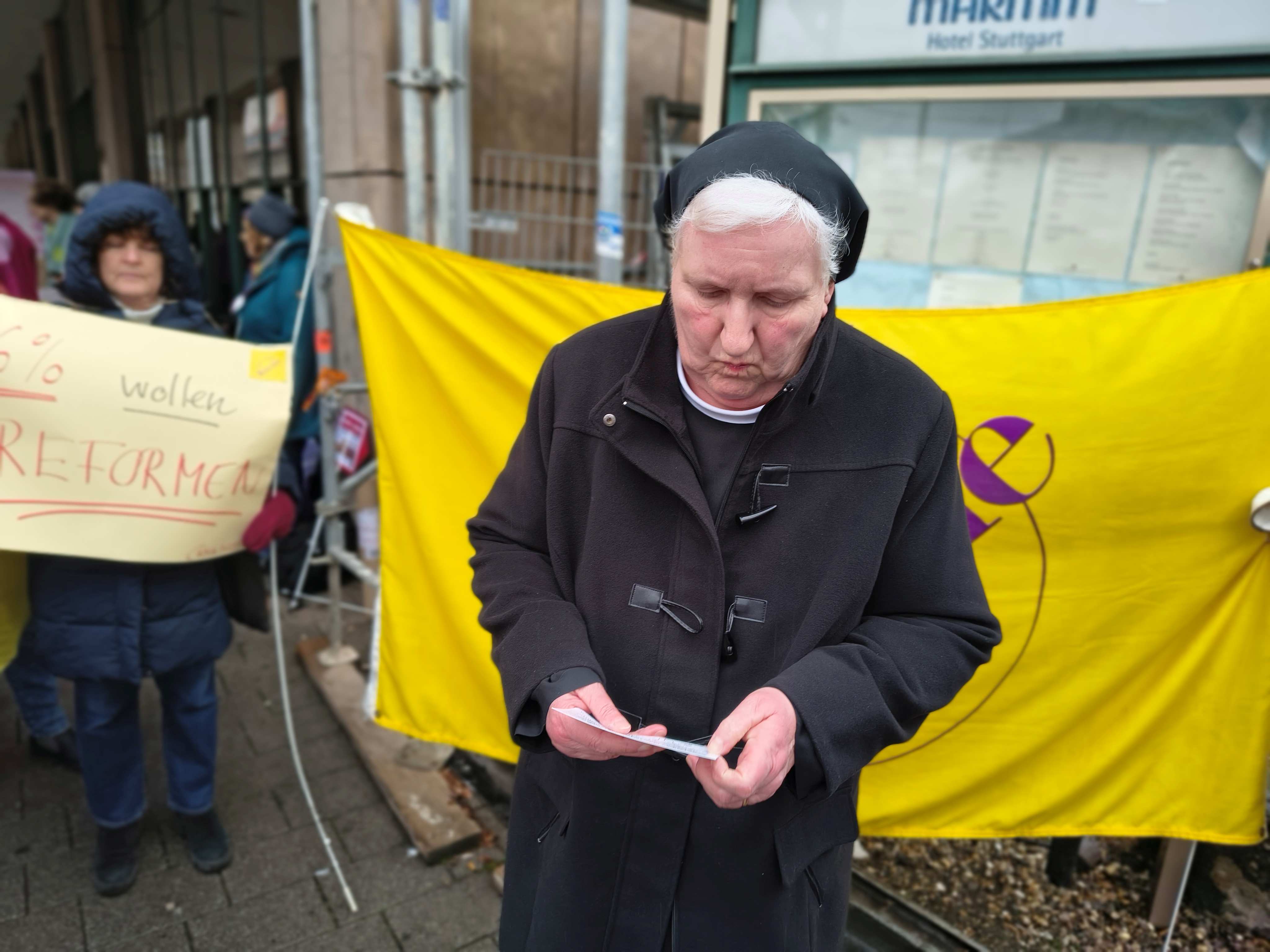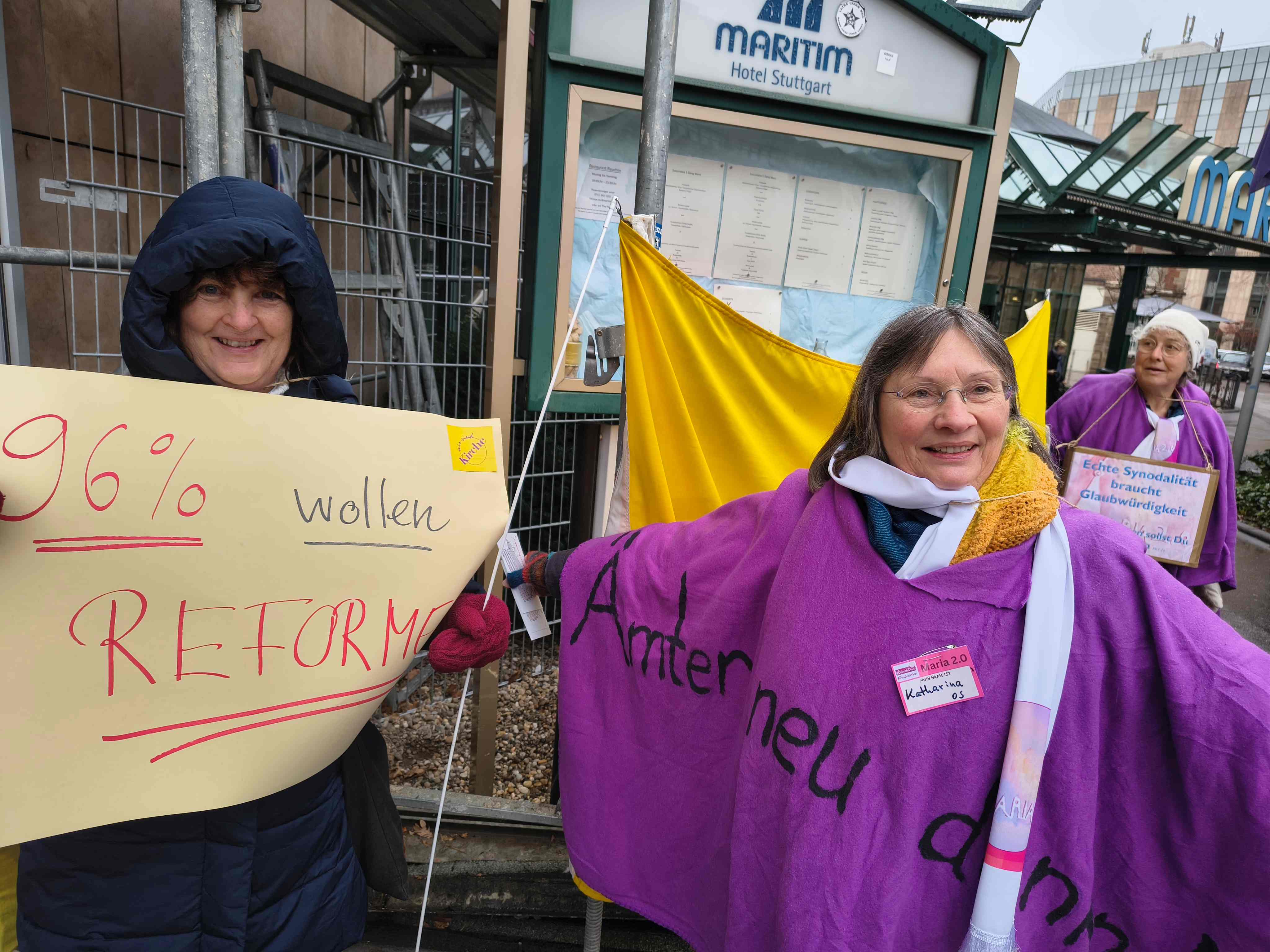 Begrüßung der ankommenden Synodalen durch die Reformkräfte